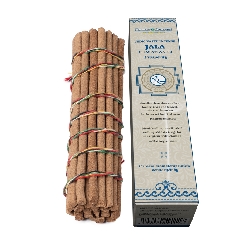 Аюрведичният билков инсенс Jala насърчава позитивното мислене и стимулира креативността. Допринася за формирането на добри взаимоотношения и изживяването на удовлетворение от нашите действия у дома или на работа.